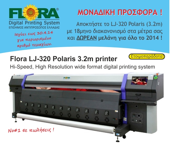 H Flora παρουσιάζει τα νέα Uv εκτυπωτικά PP2512 & PP-1816 τα οποία διαθέτουν σταθερό τραπέζι αντί Conveyor Belt (ιμάντα κίνησης υλικών) και ειναι κατάλληλα για εκτυπώσεις και εφαρμογές σε υλικά μεγάλου βάρους (Τζάμια μεγάλου βάρους, Έπιπλα, κλπ.) ή για επαγγελμα- τίες που προτιμούν το σταθερό τραπέζι απο τον ιμάντα μετακίνησης των υλικών. Το νέο PP-2512, έχει ωφέλιμο πλάτος εκτύπωσης 250cm και μήκος 120cm. Τυπώνει σε άκαμπτα (επίπεδα) υλικά πάχους εως 10cm (!), ενώ το νέο PP-1816, έχει ωφέλιμο πλάτος εκτύπωσης τα 183cm, μήκος τα 320cm και τυπώνει σε άκαμπτα (επίπεδα) υλικά πάχους εως 5.1cm, αλλά και σε ρολλό. |