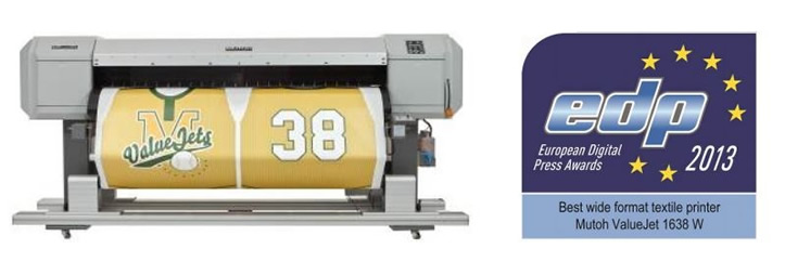 Οστάνδη, Βέλγιο. Στην FESPA 2013 στο Λονδίνο, η Mutoh κέρδισε το 1ο βραβείο EDP-2013 που δόθηκε από τον οργανισμό EDP (European Digital Press Association), για το εκτυπωτικό VALUEJET VJ-1638W , στην κατηγορία "Best Wide-Format textile Printer".