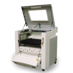 Laser σύστημα κοπής/μαρκαρίσματος εφοδιασμένο με CO2 πηγή laser και κεφαλή GALVO 3 αξόνων. Η περιοχή εργασίας ειναι 200 x 200mm ή 500x 500mm. Τα βασικά του χαρακτηριστικά ειναι η υψηλή ποιότητα, η απίστευτη ταχύτητα, και η ευελιξία στις εφαρμογές που καλύπτει. Σε συνδυασμό με τον αυτοματισμό για την αυτόματη τροφοδοσία σελίδων με μέγεθος A5/A4/A3/A3+ και βάρος μεταξύ 120 εως 300gr, αποτελεί μια πολυ ενδιαφέρουσα καινοτομική πρόταση.